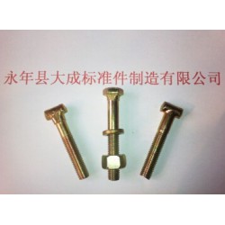河北省永年縣大成標準件制造有限公司,成立于2001年,公司位于中國大的標準件集散地之一---河北永年縣,占地50余畝,擁有**先的生產線。主要產品有:英制扣件螺絲、鍍鋅扣件螺絲、國標扣件螺絲、建筑專用扣件螺絲、T型螺栓、活節螺栓、英制螺母、 鐵鉚釘、鋁模板錐銷、鋼筋連接套筒等建筑配件螺絲,也可根據圖紙定做異型螺栓、螺母、平墊等金屬件。我公司秉承:“質量*先,誠信經營”的服務理念,在新時期 新形勢下,占領市場競爭的戰略的制高點, 以飽滿的精神和兢兢業業的態度迎接一次又一次嚴格的市場挑戰,力求在外的中贏得信譽和良好的口碑!著力打造"大成"品牌!