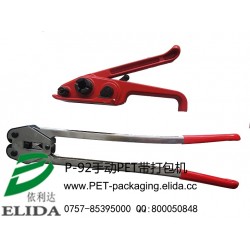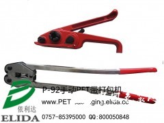 依利達P-92手動塑鋼帶打包機|廣州托盤手工PET帶捆包機|東莞棧板PET塑料帶捆扎機|惠州卡板塑料包裝帶打捆機|珠海地臺板捆包帶包裝機械|肇慶陶瓷打托機|膠膜木箱包裝設備|佛山膠合板中纖板板材打包工具:手動拉緊,手動咬扣(帶扣,鋼扣要求帶牙);