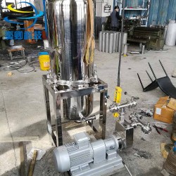 本機的過濾系統由機腔、殼體、空心軸、過濾元件、隔環、密封圈、卡箍、緩板、玻璃視鏡窗、壓力表等組成,機腔分整體,多節二種,聯接處采用無毒橡膠密封圈,所有與液體接觸部分全部采用1Cr18Ni9Ti優質不銹鋼制造,工作時用手輪或用卡箍作用力連接殼體密封胎,腔體和視鏡窗上裝有排氣閥,開機后其氣體可從排氣閥排出。