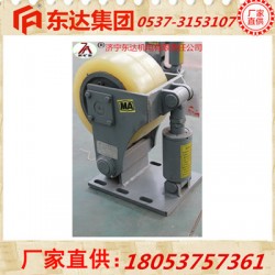根據滾輪磨損情況,應對滾輪進行調整,方法是松開螺桿鎖緊螺母,轉動螺桿使滾輪靠向罐道,間隙0~2mm,調好后緊固鎖緊螺母。
