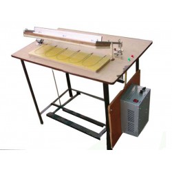 3、調試好與薄膜厚度相應的熱合溫度,封口機(封切機)即可正常工作,踩一下腳踏開關,上壓條壓下去,觸動臺面微動開關,發熱絲就會通電發熱,同事綠色工作燈也發亮,工作燈熄滅后,發熱絲就沒有電流通過,不再發熱。