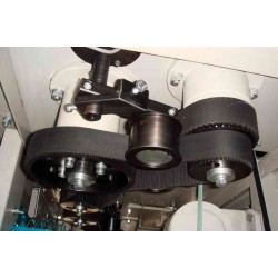 同步帶傳動是由一根內周表面設有等間距齒的封閉環形膠帶和相應的帶輪所組成。運動時,帶齒與帶輪的齒槽相嚙合傳遞運動和動力,是一種嚙合傳動,因而具有齒輪傳動、鏈傳動和平帶傳動的各種優點 。同步帶傳動具有準確的傳動比,無滑差,可獲得恒定的速比,可精密傳動,傳動平穩,能吸震,噪音小,傳動速比范圍大,一般可達1:10,允許線速度可達50m/s,傳動效率高,一般可達98%-99%。傳遞功率從幾瓦到數百千瓦。結構緊湊還適用多軸傳動,張緊力小,不需潤滑,無污染,因而可在不允許有污染和工作環境較為惡劣的場合下正常工作。