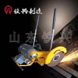 3、將電動鐵路切軌機(jī)DQG-4裝在鋼軌上,裝置卡具,依據(jù)需求挪動電動鐵路切軌機(jī)至預(yù)先設(shè)定的切割位置。然后使卡具內(nèi)面(凸面)與鋼軌頂面、軌腭下部貼緊,旋緊緊定螺栓,切軌機(jī)處于工作狀態(tài)。