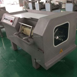切丁機是肉類制品生產制作工藝中的一個重要設備。將肉塊,脂肪等主要原料,切割成用戶所需要的肉丁,調整刀柵的尺寸可切出肉絲,肉片,肉丁。