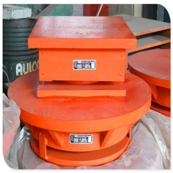 QPZ系列盆式橡膠支座適用于七度震區(qū)(含七度)以下的公路、市政和鐵路橋梁及其他結構工程。此盆式橡膠支座具有很好的豎向承載力,在豎向設計荷載作用下,支座壓縮變形值小于支座總高度的2%,盆環(huán)上口徑向變形小于盆環(huán)外徑的0.5%,支座殘余不超總變形量的5%,還具有很好的水平承載力,在固定支座在各方向和單向活動支座非滑移方向的水平承載力均大于支座豎向承載力的10%。這種支座的轉動轉角度大于0.02rad.在加入5201硅脂潤滑后,常溫型活動支座設計摩阻系數小0.03;加5201硅脂潤滑后,耐寒型活動支座設計摩阻系數小0.06。由于TPZ、GPZ等系列橡膠支座均為兩側導槽式活動橡膠支座,當在多跨連續(xù)上使用時,由于日照溫度應力引起梁體的側彎,在兩側導槽式單向活動支座易產生約束力,而中間導槽式單向活動支座在梁體產生側彎時,中間導槽可帶動支座中間鋼襯板做少量轉動。可以避免側向約束力.