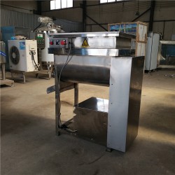 本機使用斜板式漿葉加絞龍式攪拌,使物料在料筒中翻動的同時還做圓周運動,使用雙軸承結構提高了攪拌效率和攪拌效果,使各種材料攪拌更加均勻。物料被漿葉進行徑向翻滾,絞龍向回流完成混合均勻的攪拌功能。盛眾生產的拌餡機是參照國際同類先進產的特點,同時結合我國肉制品加工工藝特點,自行研制開發的。該機可進行餡狀,散狀,醬狀物料的攪拌混合。
