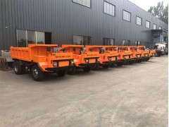 都以四不像型運輸車為主,工地環境復雜,路面難走,寬度小,或是彎道多,每一道礦井,需要的運輸車尺寸都不一樣,所以采購井下運輸車時車型可以定制,可以根據隧道的寬度、高度、長度、路面狀況進行設計訂做車型。根據發展史來說,早期使用的是礦用三輪車,單缸動力,動力小,載重量低,對路面要求高,所以這種車型后來被四輪車型頂替掉了,但是四輪車型附著面積小,在井下運輸時容易發生沉陷,使用效果不太理想。