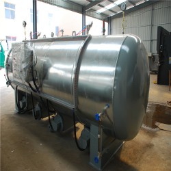 蒸汽直接硫化罐 全自動硫化設備采用溫度、壓力、硫化時間自動控制。蒸汽直接硫化罐蒸汽由罐底進入,在罐體底部設置蒸汽進口,進氣口由啟動角座閥自動控制。蒸汽擴散管在罐底排列,擴散管中蒸汽小孔(4mm,5mm)按一定規則和傾斜角度密布排列,確保蒸汽進入到罐內后溫度均勻向四周擴散,硫化罐內溫度無死角,防止蒸汽擴散不均和蒸汽直接加熱所造成的產品受熱不均。設定工作程序后,控制系統自動進行進氣、排氣、升溫、保溫、硫化等工作,硫化結束后自動關閉并發出生光報警提示。硫化罐內溫度和壓力保持恒定、均勻,防止罐內產品因溫度和壓力不均而造成的產品硫化效果不同全自動硫化設備。