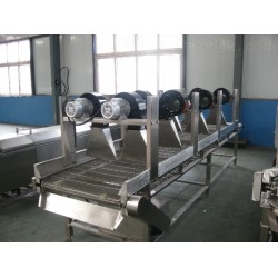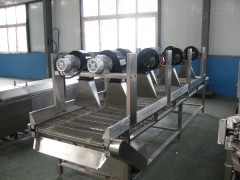 翻轉式風干流水線主要是由選袋機、洗袋機、振動瀝水機、和風干機組成。首先通過選袋機將真空包裝過程中的殘次品利用水的浮力給挑選出來,接下來就是清洗包裝,清洗根據產品不同可選擇滾筒清洗和水浴鼓泡清洗,清洗完之后的產品外包裝袋上肯定會殘留許多的水珠,通過振動瀝水機將大水珠給去掉,剩下的水分由風干機*后熱風烘干*保*包裝袋的干燥。