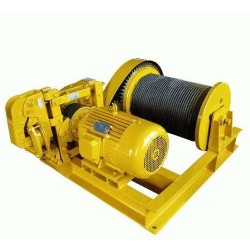 卷揚機又稱之為絞車工作原理:由人力或機械動力驅動卷筒、卷繞繩索來完成牽引工作的裝置。垂直提升、水平或傾斜曳引重物的簡單起重機械。分手動和電動兩種,主要以電動為主。電動卷揚機由電動機、聯軸節、制動器、齒輪箱和卷筒組成,共同安裝在機架上。電動卷揚機又可稱為電動葫蘆。對于起升高度和裝卸量大,工作繁忙的情況下,要求調速性能好,特別要空鉤能快速下降。對安裝就位或敏感的物料,要能以微動速度下降。卷揚機包括JK快速卷揚機和JM慢速卷揚機,僅能在地上使用,它以電動機為動力,經彈性聯軸節,三級封閉式齒輪減速器,牙嵌式聯軸節驅動卷筒,采用電磁制動。該產品通用性高、結構緊湊、體積小、重量輕、起重大、使用轉移方便,被廣泛應用于建筑、水利工程、林業、礦山、碼頭等的物料升降或平拖,還可作現代化電控自動作業線的配套設備。 更多卷揚機專業知識請致咨詢電保定諾友起重機械有限公司!卷揚機,諾友卷揚機 1噸卷揚機質量材質上乘。
