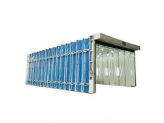 伸縮移動(dòng)前室是本公司為解決重型工件移動(dòng)難及工作區(qū)的綜合利用而專門設(shè)計(jì)的。一般固定式前室遇到將重型工件移入移出的工序,對(duì)于需要用天車、臺(tái)車搬運(yùn)的工件就無法實(shí)現(xiàn)運(yùn)輸,而移動(dòng)前室可克服此弊端。*先工件噴漆前通過電控柜控制移動(dòng)前室收縮合攏,讓出噴漆場(chǎng)地。待工件用天車安放就位后可控制移動(dòng)前室打開至“罩”住工件即可,而不用再移動(dòng)工件,這樣可以不影響天車的工作。移動(dòng)前室由幾組可保持平行移動(dòng)的框架及連接框架的段接蓬布組成。框架之間的滑動(dòng)連接機(jī)構(gòu)框架在驅(qū)動(dòng)裝置的帶動(dòng)下沿地面的軌道前后移動(dòng)時(shí)保持豎直平行,同時(shí)帶動(dòng)蓬布展開合攏。移動(dòng)前室收縮合攏時(shí),將工件移入工作區(qū),展開時(shí)可進(jìn)行工件的噴漆。