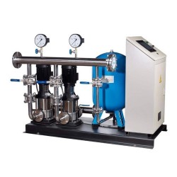 3.變頻增壓泵:變頻增壓泵是調速電機與水泵組合而成,工作時通過變頻器啟動和控制轉速,從而控制水流量。變頻供水設備在工作時,水泵以一定的轉速運行,在原市政供水管網的水壓上疊加壓力,把管道里的水輸送到高樓層。當用戶管道用水量增加,市政供水量不能滿足用水量時,變頻控制柜發出指令,啟動變頻增壓泵,并且根據用水量的大小自動調節水泵轉速,*證恒壓供水。