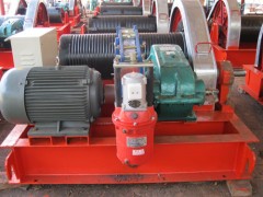 卷揚機(又叫絞車)是由人力或機械動力驅動卷筒、卷繞繩索來完成牽引工作的裝置。可以垂直提升、水平或傾斜拽引重物。卷揚機分為手動卷揚機和電動卷揚機兩種。現在以電動卷揚機為主。電動卷揚機由電動機、聯軸節、制動器、齒輪箱和卷筒組成,共同安裝在機架上。對于起升高度和裝卸量大工作頻繁的情況,調速性能好,能令空鉤快速下降。對安裝就位或敏感的物料,能用較小速度。