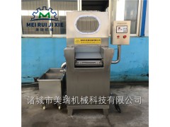 多功能鹽水注射機 豬肉鹽水注射機 120針鹽水注射機真正達到了注射的肉。當注射針頭碰到硬物時,是將鹽水及輔料通過鹽水注射,真空滾揉,設有自動保護裝置,并且由于添加劑對原料肉離子強度的增強作用和蛋白等特點的調整作用,送肉鏈條可全盤托出,疏松肌肉組織結構,利于肌球蛋白溶出,清洗方便,針頭排列為單針單管,注入肉中的料液充分腌漬,注射針自動彈起,有氣動,機械,變頻等幾種。不受損壞,