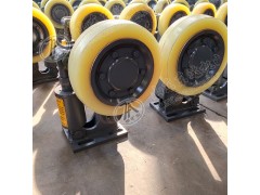 根據滾輪磨損情況,應對滾輪進行調整,方法是松開螺桿鎖緊螺母,轉動螺桿使滾輪靠向罐道,間隙0~2mm,調好后緊固鎖緊螺母。