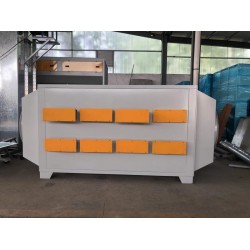 活性炭吸附箱又名活性炭吸附裝置、活性炭吸附器、活性炭過濾器主要應用于有機廢氣的處理,主要是吸附箱,內含穿孔板、活性炭吸附層等部件。本裝置采用不銹鋼板、鍍鋅鋼板、A3碳鋼、PP板等材質制作而成。本裝置具有節省動力,操作維護方便等優點;本裝置適用于家具、木業、制革、五金建材等行業的有機廢氣處理,去除率高達85%以上。