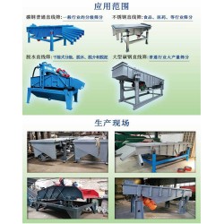 直線篩是一種多功能篩分設(shè)備,這種直線振動(dòng)篩不但可以應(yīng)用在各個(gè)行業(yè)中。還具有產(chǎn)量大,精度高的特點(diǎn),主要是根據(jù)您需要篩分的物料來(lái)定制會(huì)更合理。同時(shí)也會(huì)輕松的達(dá)到您篩分的目的。由振動(dòng)電機(jī)、篩箱、篩網(wǎng)、傳振體、減振裝置組成。適用于粒度在0.074-5mm、含水量小于70%、無(wú)粘性的各種干式粉狀物料的篩分,**給料粒度不大于10mm。通過(guò)多層篩網(wǎng)實(shí)現(xiàn)2-6種不同規(guī)格物料的分*作業(yè),往往配合其他機(jī)械設(shè)備、如輸送機(jī)、提升機(jī)、破碎機(jī)等,完成整個(gè)流水線的自動(dòng)化作業(yè)。具有耗能低、產(chǎn)量高、結(jié)構(gòu)簡(jiǎn)單、易維修、全封閉結(jié)構(gòu),無(wú)粉塵溢散。